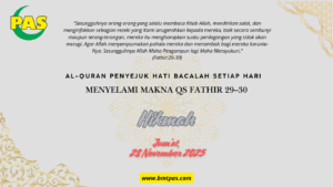 www.bmtpas.com Surat Fathir ayat 29–30 adalah dua ayat agung yang menggambarkan karakter utama para hamba Allah yang dekat dengan Al-Qur’an dan amal saleh. Ayat ini