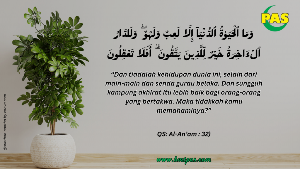 www.bmtpas.com Ketika seseorang mengamati kehidupan ini dengan nalar dan nurani yang jernih, cahaya kebenaran Al-Qur’an menyinari setiap aspek eksistensi. Kita menjadi saksi bahwa dunia ini bukanlah lebih dari sekadar permainan dan senda gurau yang sementara, sebuah panggung yang seharusnya hanya menjadi batu loncatan menuju kehidupan abadi di akhirat.