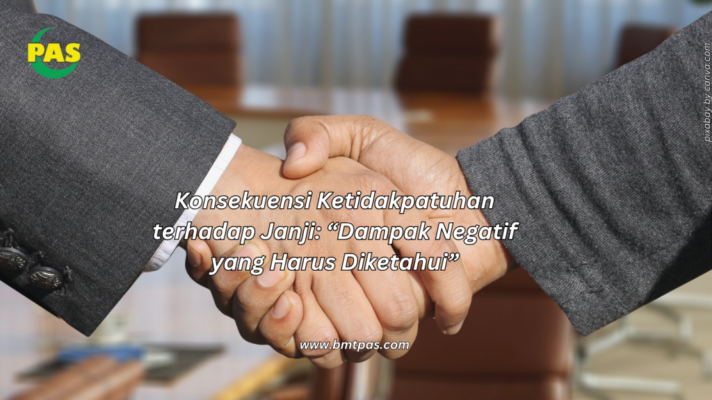 www.bmtpas.com Ketidakpatuhan terhadap janji dapat memiliki berbagai akibat negatif yang dapat memengaruhi baik individu maupun masyarakat secara keseluruhan. Berikut adalah delapan akibat yang sering kali terjadi akibat ketidakpatuhan terhadap janji: